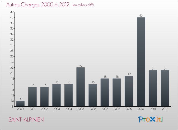 En 2012, les charges de fonctionnement de la commune de Saint-Alpinien étaient de : 186 000 € décomposées comme suit :