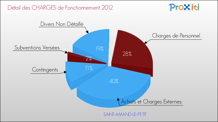 En 2012, les charges de fonctionnement de la commune de Saint-Amand-le-Petit étaient de : 131 000 € décomposées comme suit :