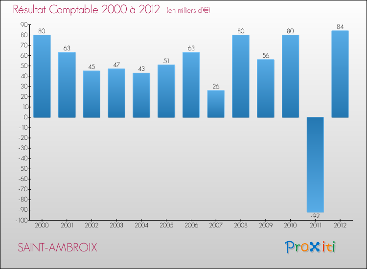 Le résultat comptable de la commune de Saint-Ambroix s'établissait ainsi à : + 84 000 € fin 2012.