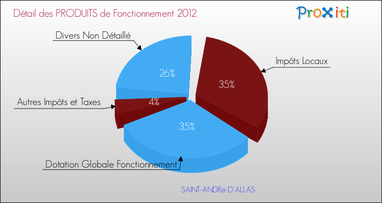 En 2012, le budget de fonctionnement de la commune de Saint-André-d'Allas se montait à : 568 000 € décomposé comme suit :