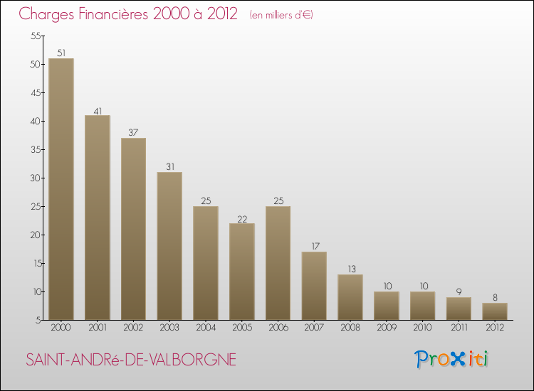 Le résultat comptable de la commune de Saint-André-de-Valborgne s'établissait ainsi à : -3 000 € fin 2012 (recettes-dépenses).
