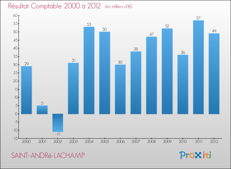 Le résultat comptable de la commune de Saint-André-Lachamp s'établissait ainsi à : + 49 000 € fin 2012.