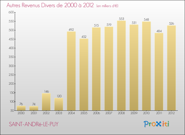 En 2012, le budget de fonctionnement de la commune de Saint-André-le-Puy se montait à : 964 000 € décomposé comme suit :