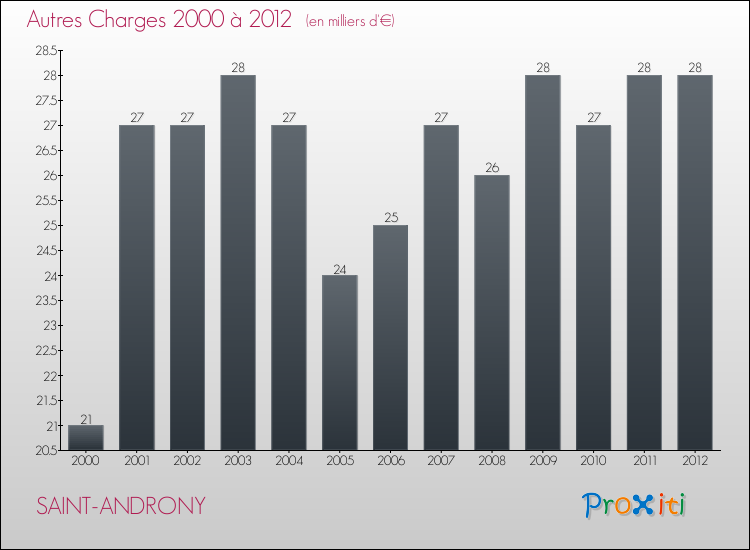 En 2012, les charges de fonctionnement de la commune de Saint-Androny étaient de : 277 000 € décomposées comme suit :