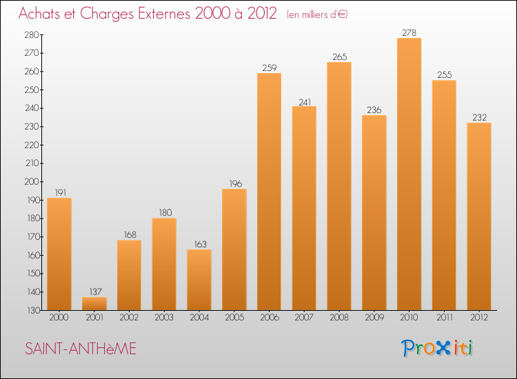 En 2012, les charges de fonctionnement de la commune de Saint-Anthème étaient de : 676 000 € décomposées comme suit :