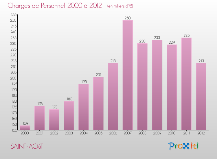 En 2012, les charges de fonctionnement de la commune de Saint-Août étaient de : 471 000 € décomposées comme suit :