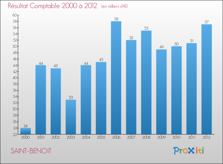 Le résultat comptable de la commune de Saint-Benoît s'établissait ainsi à : + 57 000 € fin 2012.