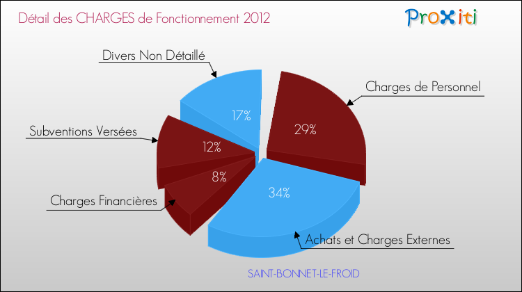 En 2012, les charges de fonctionnement de la commune de Saint-Bonnet-le-Froid étaient de : 194 000 € décomposées comme suit :