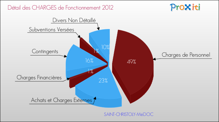 En 2012, les charges de fonctionnement de la commune de Saint-Christoly-Médoc étaient de : 184 000 € décomposées comme suit :