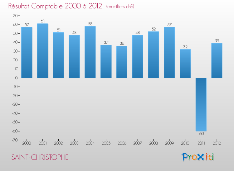 Le résultat comptable de la commune de Saint-Christophe s'établissait ainsi à : + 39 000 € fin 2012.