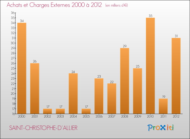 En 2012, les charges de fonctionnement de la commune de Saint-Christophe-d'Allier étaient de : 98 000 € décomposées comme suit :