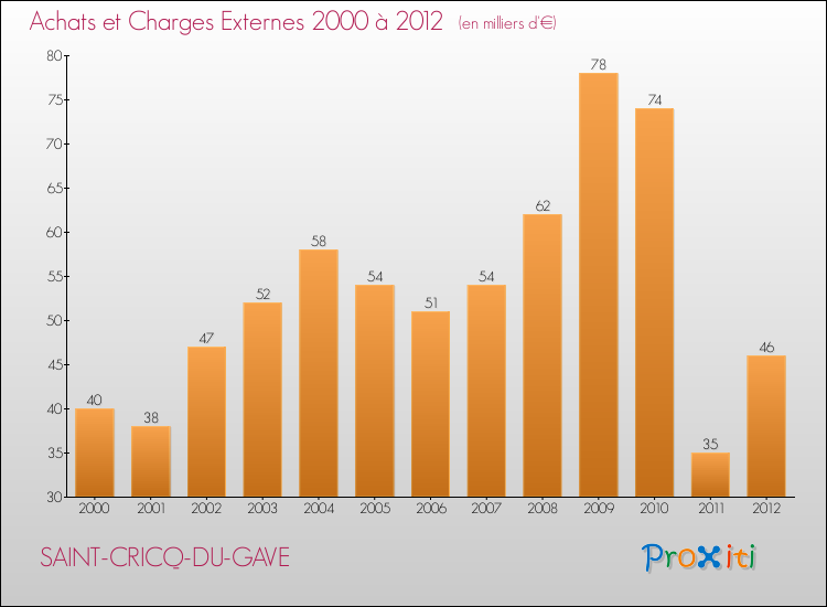 En 2012, les charges de fonctionnement de la commune de Saint-Cricq-du-Gave étaient de : 186 000 € décomposées comme suit :