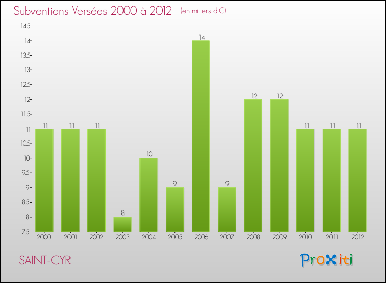 En 2012, le budget de fonctionnement de la commune de Saint-Cyr se montait à : 615 000 € décomposé comme suit :