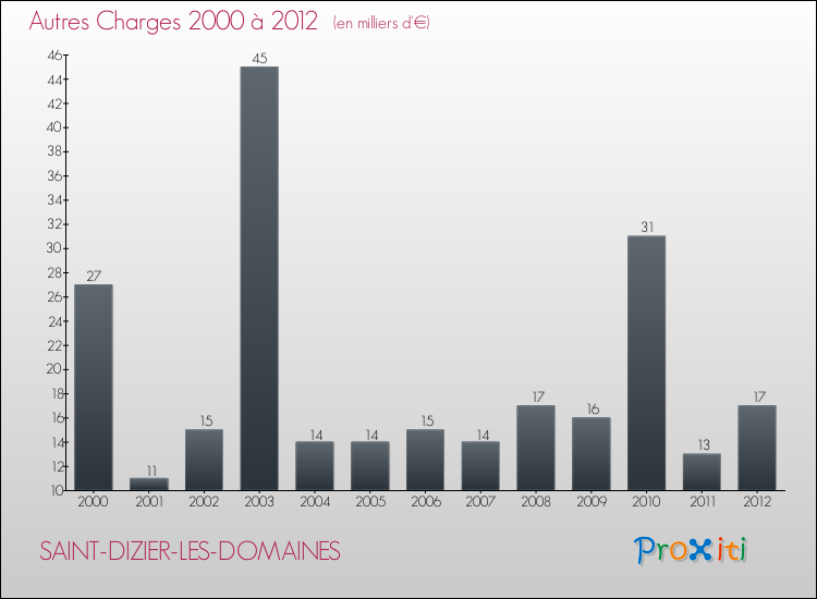 En 2012, les charges de fonctionnement de la commune de Saint-Dizier-les-Domaines étaient de : 137 000 € décomposées comme suit :