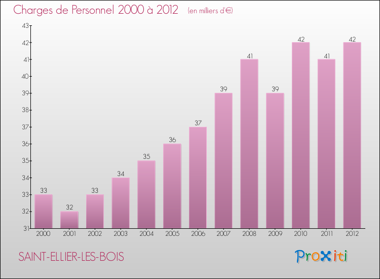 En 2012, les charges de fonctionnement de la commune de Saint-Ellier-les-Bois étaient de : 118 000 € décomposées comme suit :