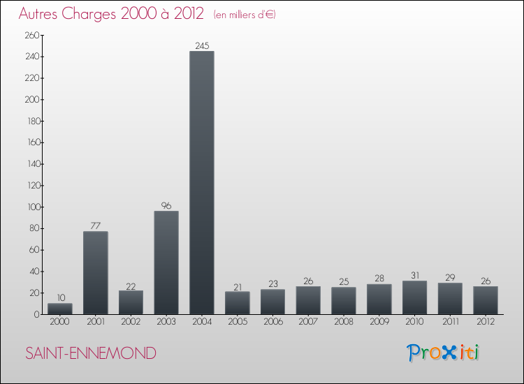 En 2012, les charges de fonctionnement de la commune de Saint-Ennemond étaient de : 390 000 € décomposées comme suit :