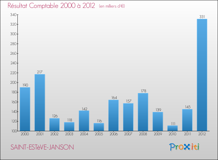 Le résultat comptable de la commune de Saint-Estève-Janson s'établissait ainsi à : + 331 000 € fin 2012.