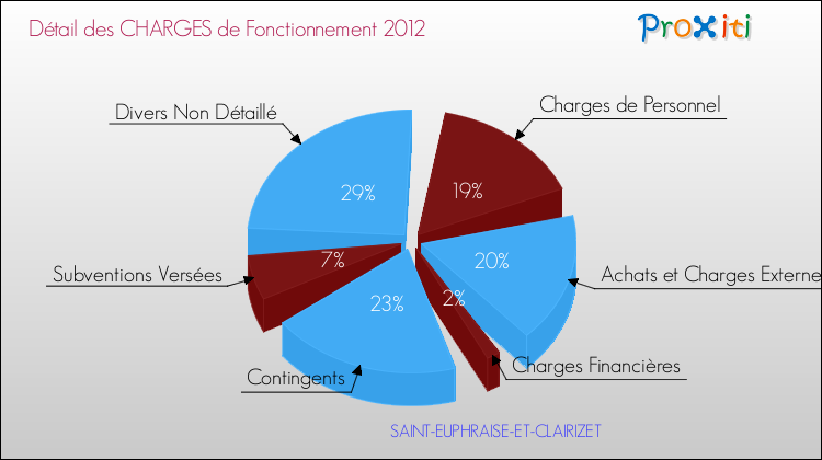 En 2012, les charges de fonctionnement de la commune de Saint-Euphraise-et-Clairizet étaient de : 116 000 € décomposées comme suit :
