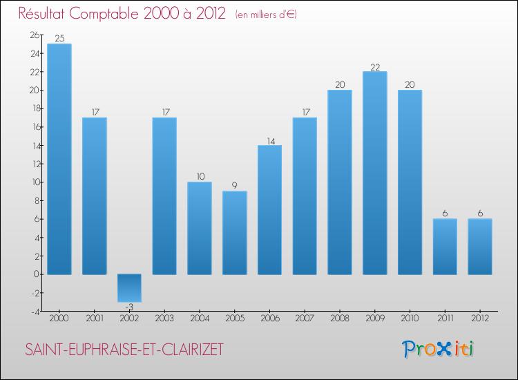 Le résultat comptable de la commune de Saint-Euphraise-et-Clairizet s'établissait ainsi à : + 6 000 € fin 2012.