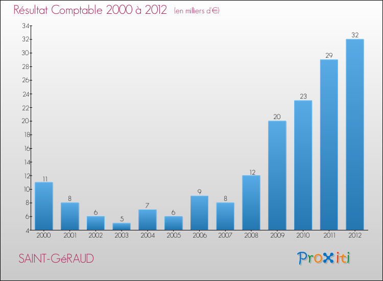 Le résultat comptable de la commune de Saint-Géraud s'établissait ainsi à : + 32 000 € fin 2012.