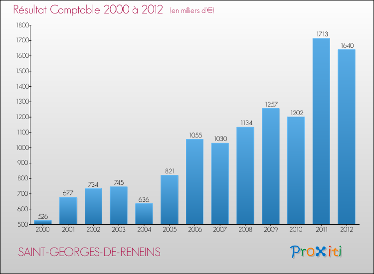Le résultat comptable de la commune de Saint-Georges-de-Reneins s'établissait ainsi à : + 1 640 000 € fin 2012.