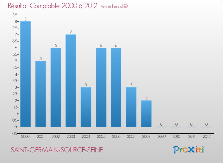 Le résultat comptable de la commune de Saint-Germain-Source-Seine s'établissait ainsi à : + 0 € fin 2012.