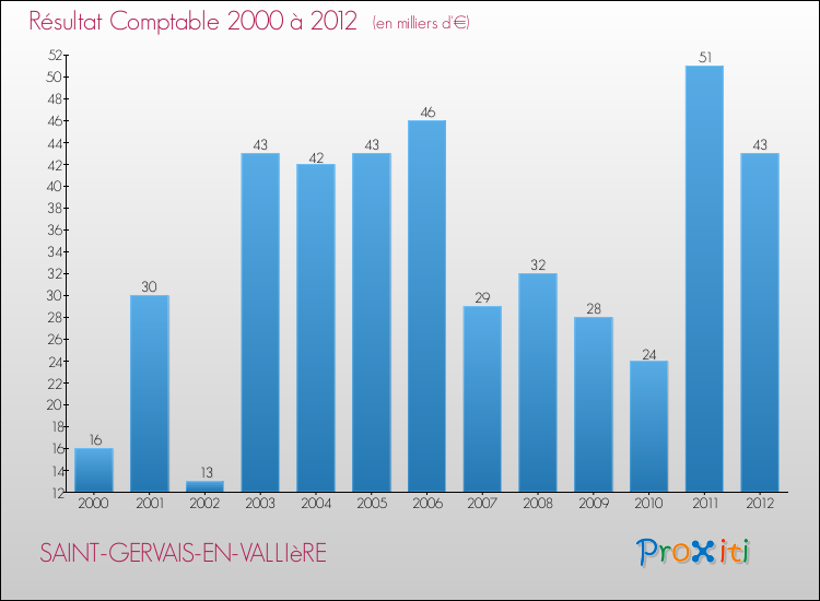 Evolution du résultat comptable pour SAINT-GERVAIS-EN-VALLIèRE de 2000 à 2012