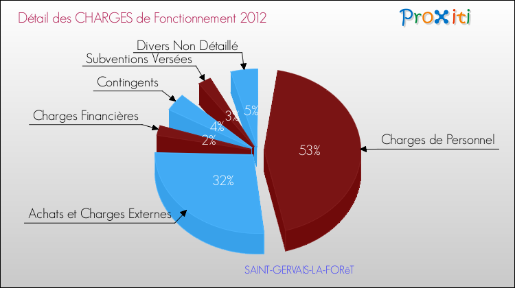 En 2012, les charges de fonctionnement de la commune de Saint-Gervais-la-Forêt étaient de : 2 726 000 € décomposées comme suit :