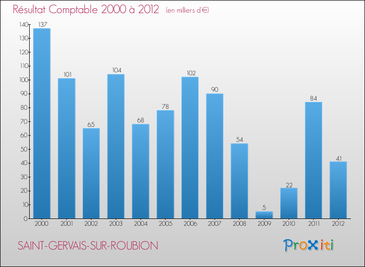 Le résultat comptable de la commune de Saint-Gervais-sur-Roubion s'établissait ainsi à : + 41 000 € fin 2012.