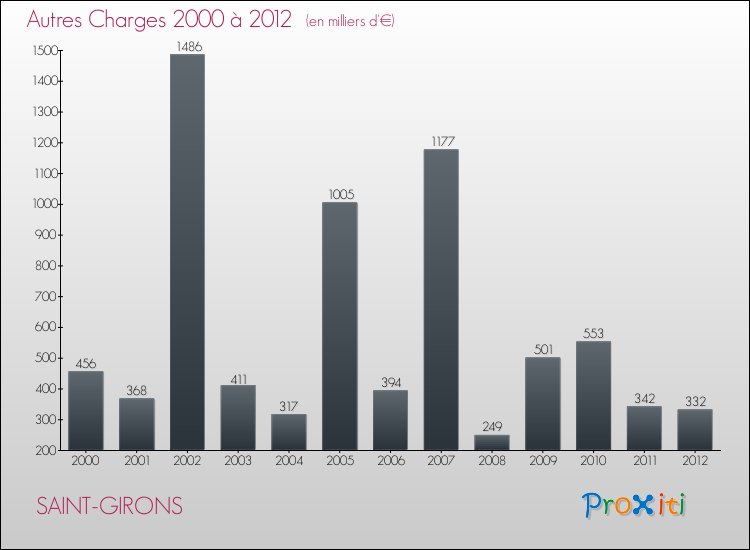 En 2012, les charges de fonctionnement de la commune de Saint-Girons étaient de : 7 000 000 € décomposées comme suit :