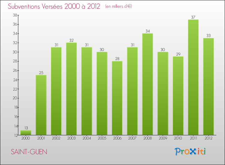 Le résultat comptable de la commune de Saint-Guen s'établissait ainsi à : + 97 000 € fin 2012.