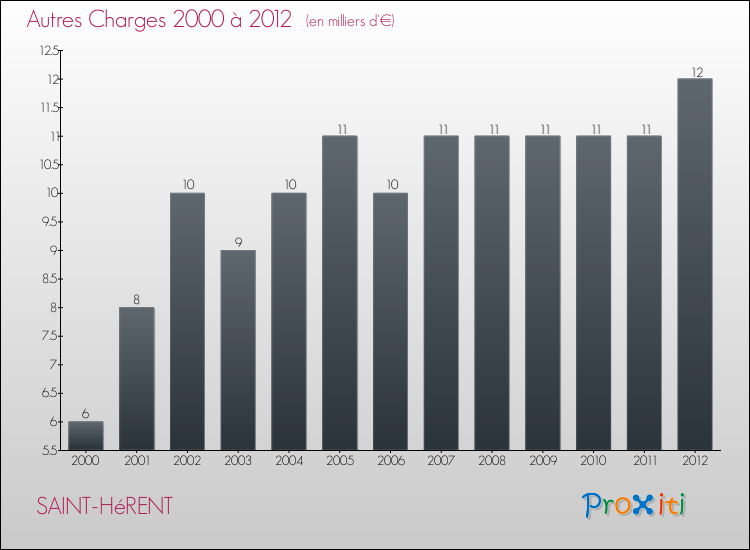 En 2012, les charges de fonctionnement de la commune de Saint-Hérent étaient de : 55 000 € décomposées comme suit :