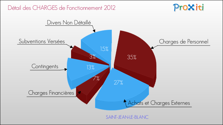 En 2012, les charges de fonctionnement de la commune de Saint-Jean-le-Blanc étaient de : 92 000 € décomposées comme suit :