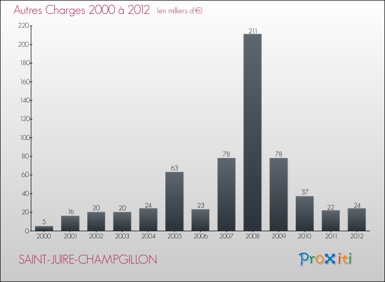 En 2012, les charges de fonctionnement de la commune de Saint-Juire-Champgillon étaient de : 228 000 € décomposées comme suit :