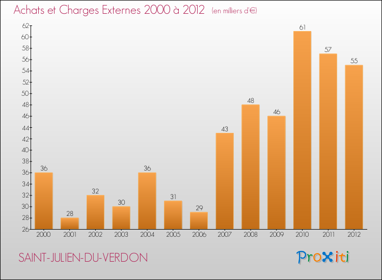 En 2012, les charges de fonctionnement de la commune de Saint-Julien-du-Verdon étaient de : 161 000 € décomposées comme suit :