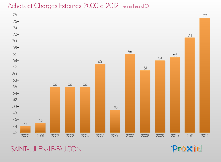 En 2012, les charges de fonctionnement de la commune de Saint-Julien-le-Faucon étaient de : 251 000 € décomposées comme suit :