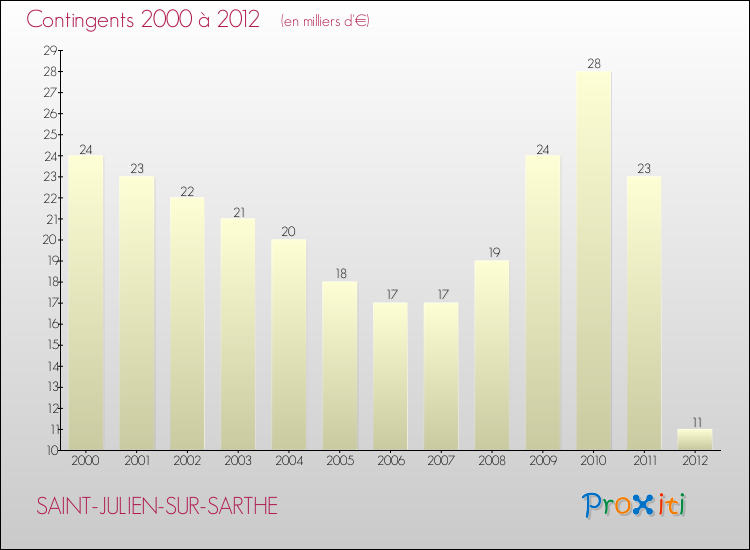 En 2012, le budget de fonctionnement de la commune de Saint-Julien-sur-Sarthe se montait à : 280 000 € décomposé comme suit :