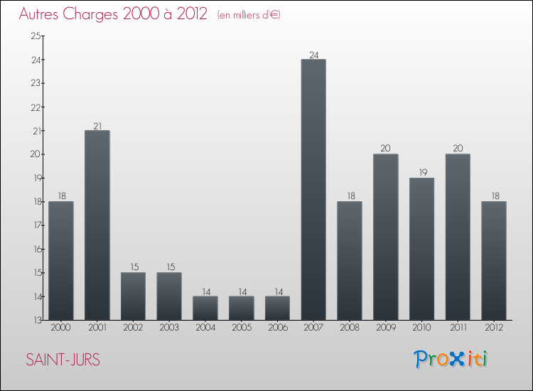 En 2012, les charges de fonctionnement de la commune de Saint-Jurs étaient de : 146 000 € décomposées comme suit :