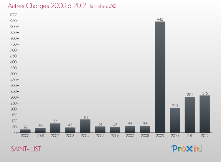 En 2012, les charges de fonctionnement de la commune de Saint-Just étaient de : 1 092 000 € décomposées comme suit :
