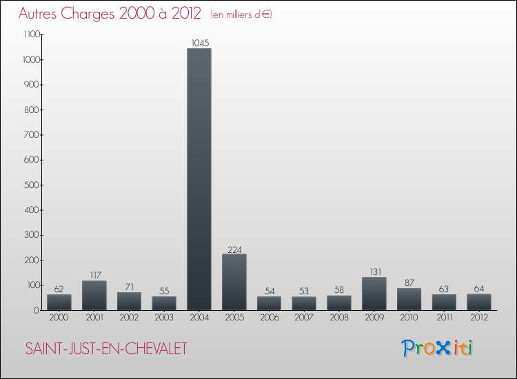 En 2012, les charges de fonctionnement de la commune de Saint-Just-en-Chevalet étaient de : 784 000 € décomposées comme suit :