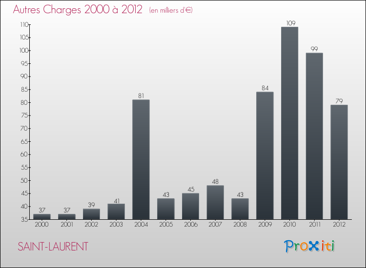En 2012, les charges de fonctionnement de la commune de Saint-Laurent étaient de : 367 000 € décomposées comme suit :