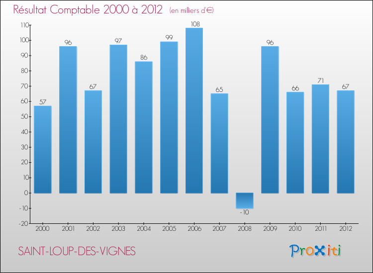 Le résultat comptable de la commune de Saint-Loup-des-Vignes s'établissait ainsi à : + 67 000 € fin 2012.