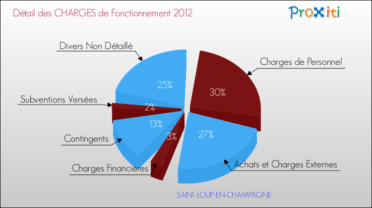 En 2012, les charges de fonctionnement de la commune de Saint-Loup-en-Champagne étaient de : 60 000 € décomposées comme suit :