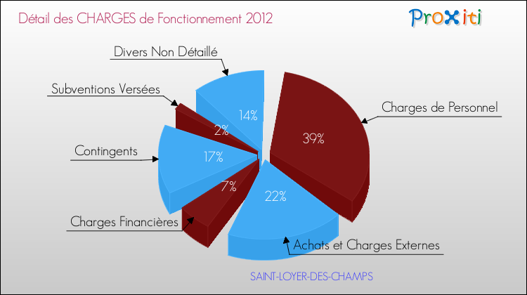 En 2012, les charges de fonctionnement de la commune de Saint-Loyer-des-Champs étaient de : 121 000 € décomposées comme suit :