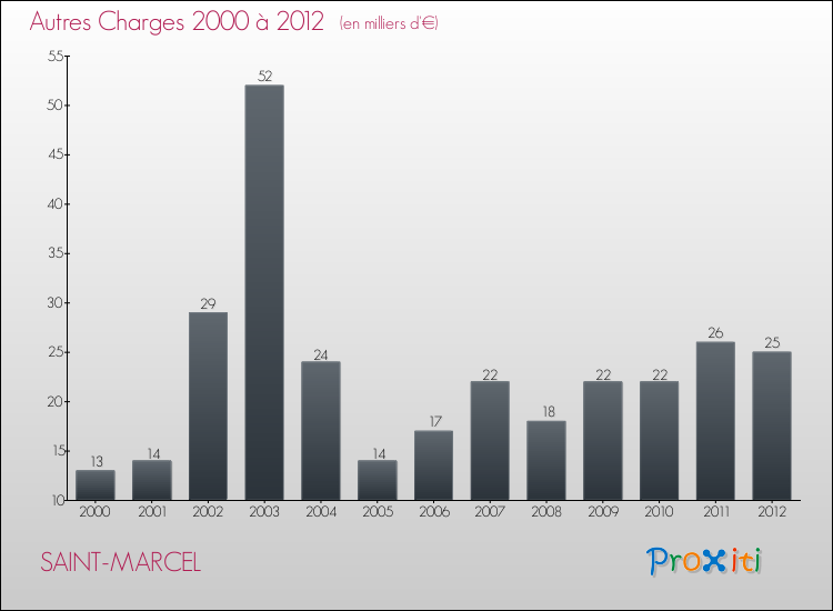 En 2012, les charges de fonctionnement de la commune de Saint-Marcel étaient de : 197 000 € décomposées comme suit :