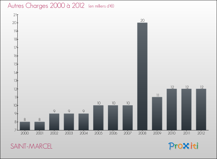 En 2012, les charges de fonctionnement de la commune de Saint-Marcel étaient de : 67 000 € décomposées comme suit :