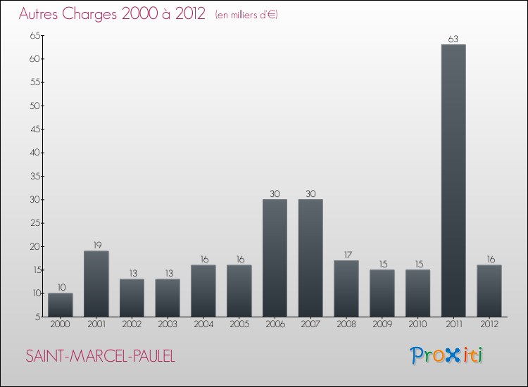 En 2012, les charges de fonctionnement de la commune de Saint-Marcel-Paulel étaient de : 164 000 € décomposées comme suit :