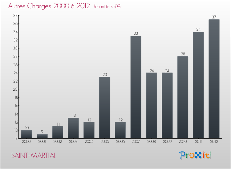 En 2012, les charges de fonctionnement de la commune de Saint-Martial étaient de : 190 000 € décomposées comme suit :
