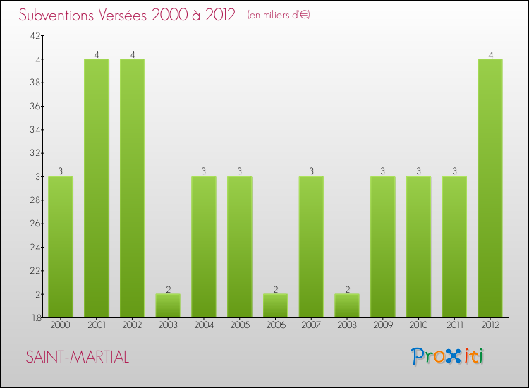 Evolution du résultat comptable pour SAINT-MARTIAL de 2000 à 2012