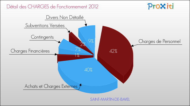 En 2012, les charges de fonctionnement de la commune de Saint-Martin-de-Bavel étaient de : 227 000 € décomposées comme suit :